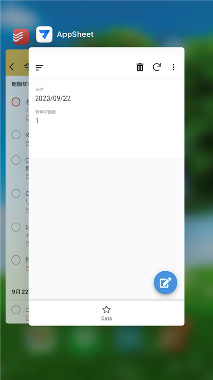常時、「Todoist」と「オリジナル背伸びカウンターアプリ(Appsheet)」だけは、必ずスタンバイ。